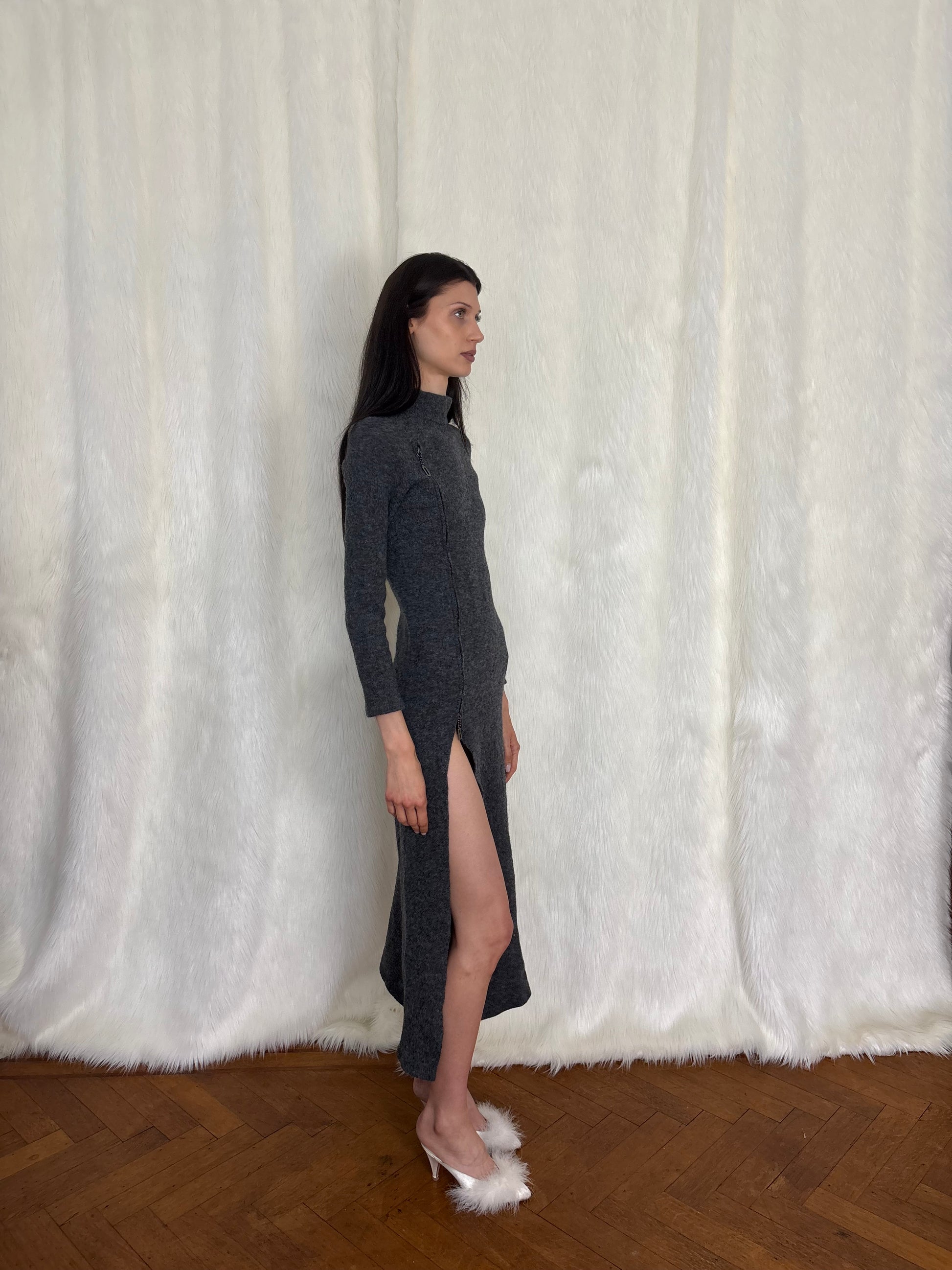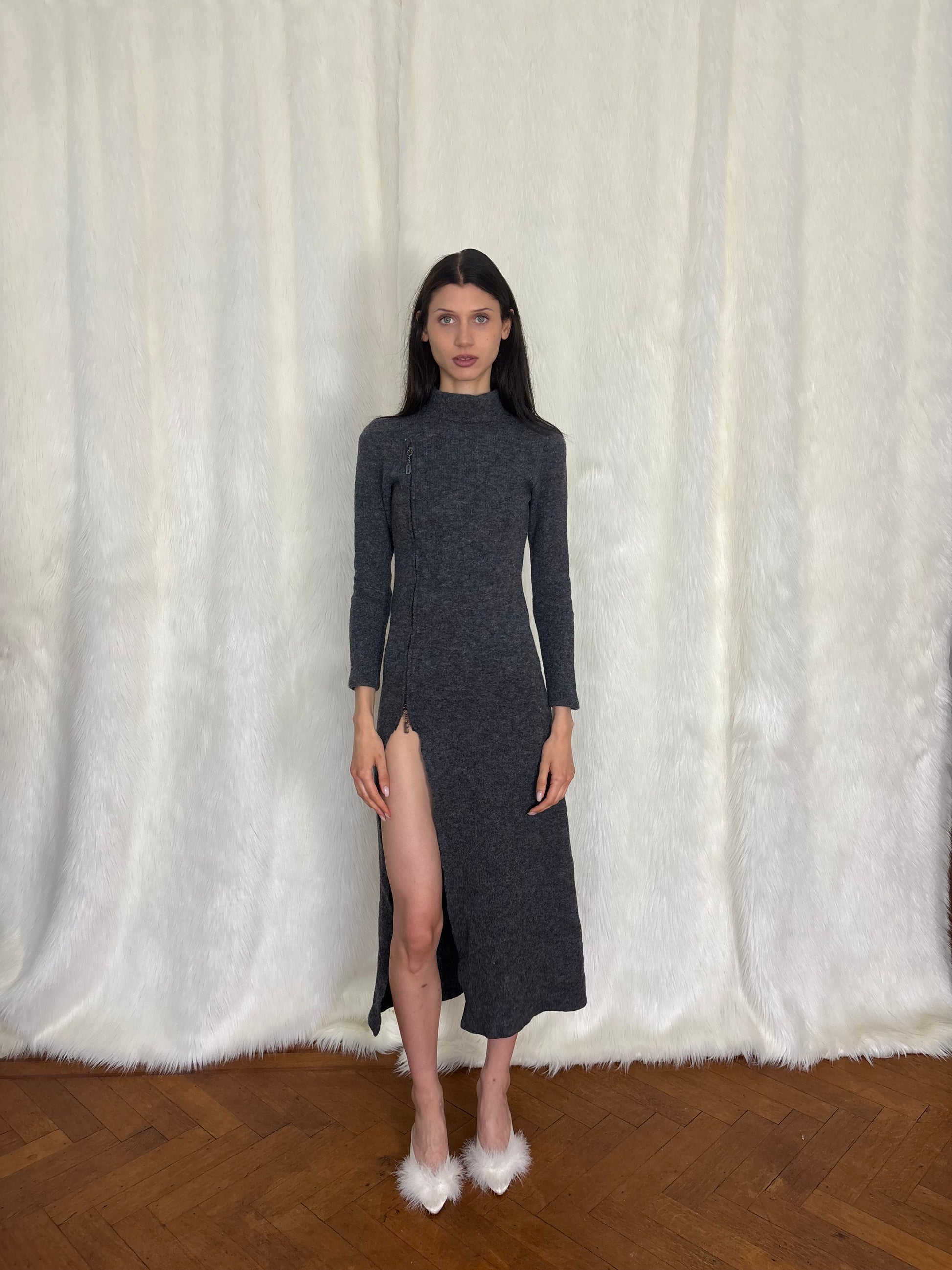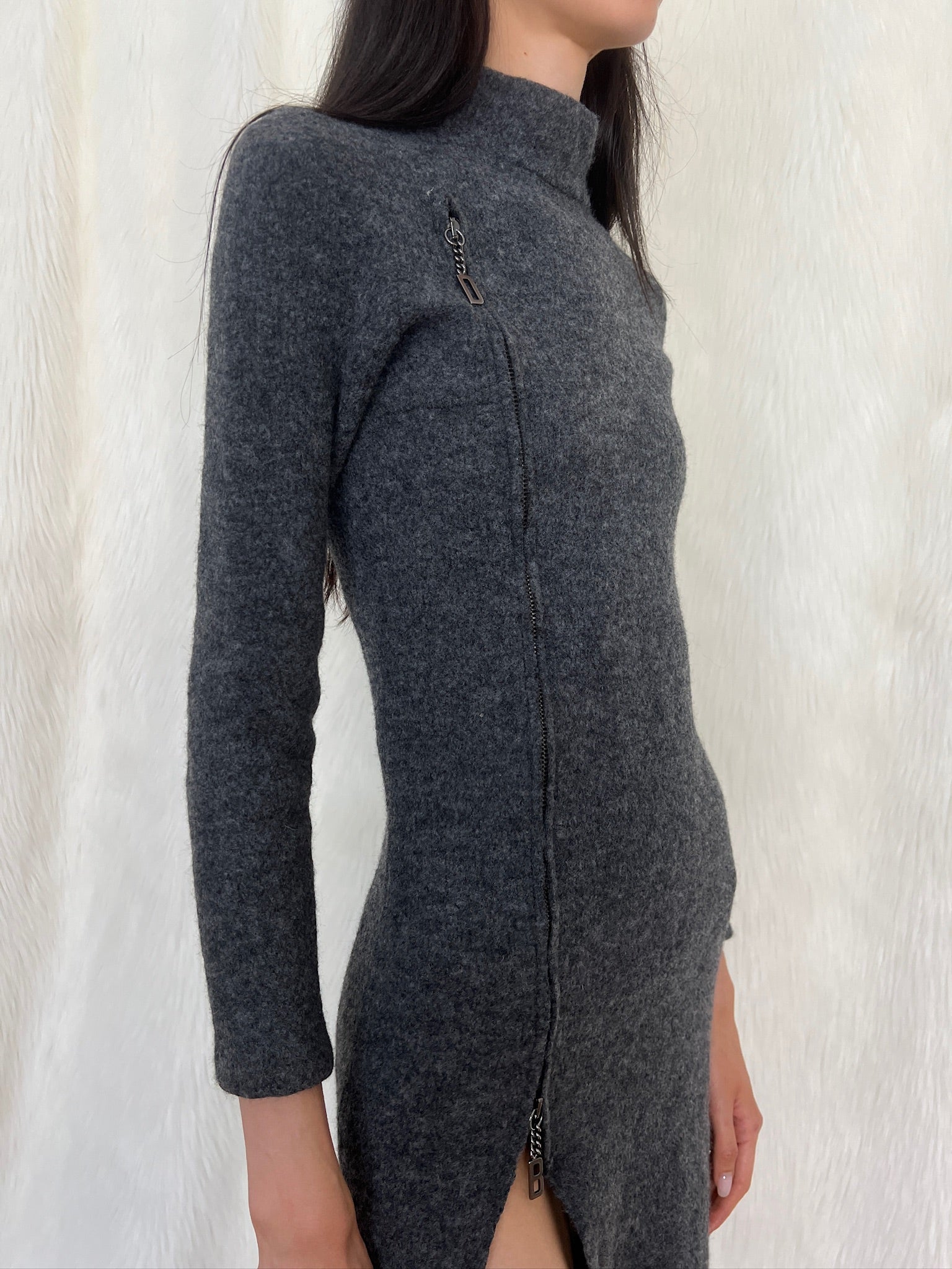 Dirk Bikkembergs f/w1999 wool maxi dress with logo zippers