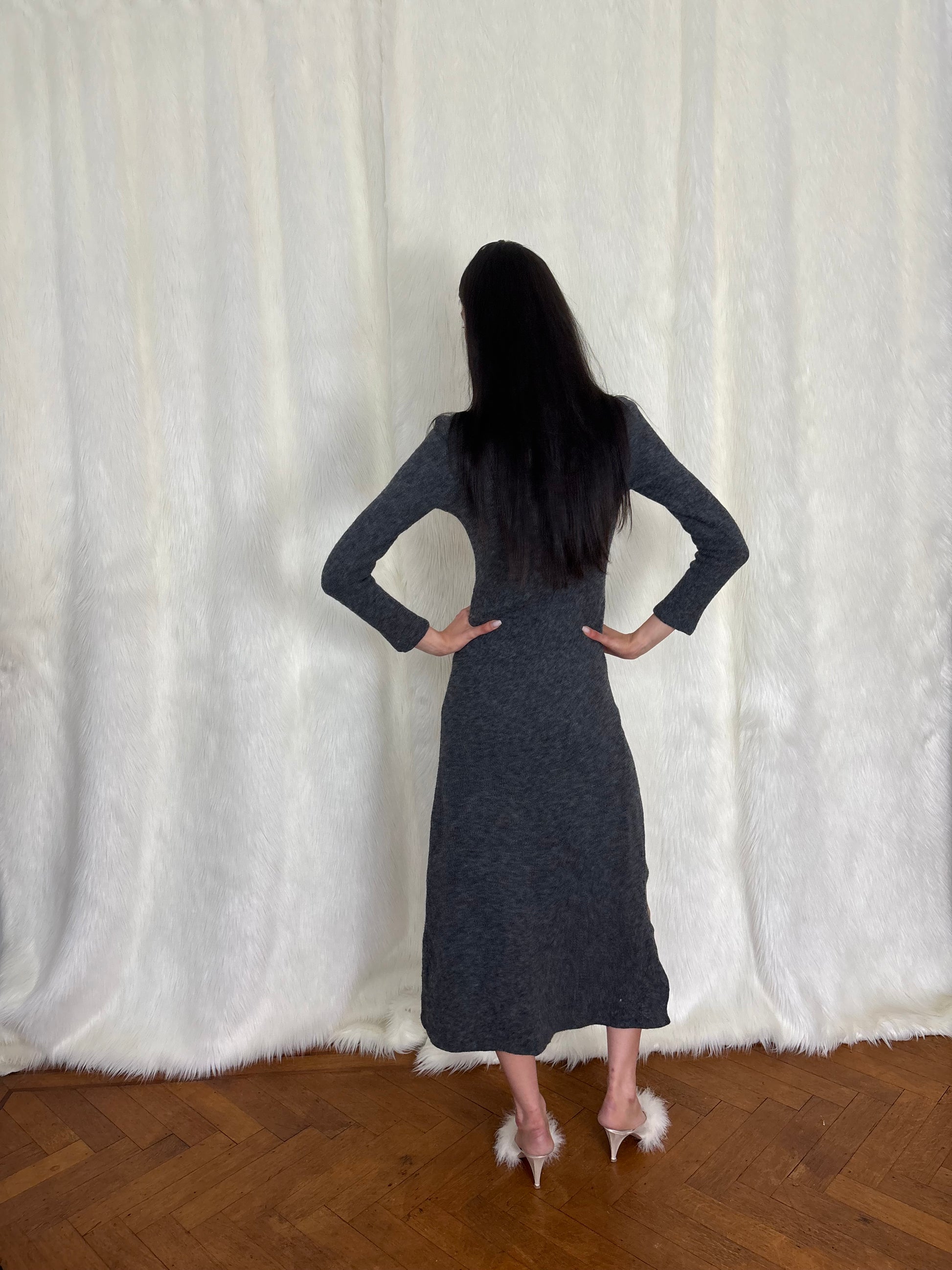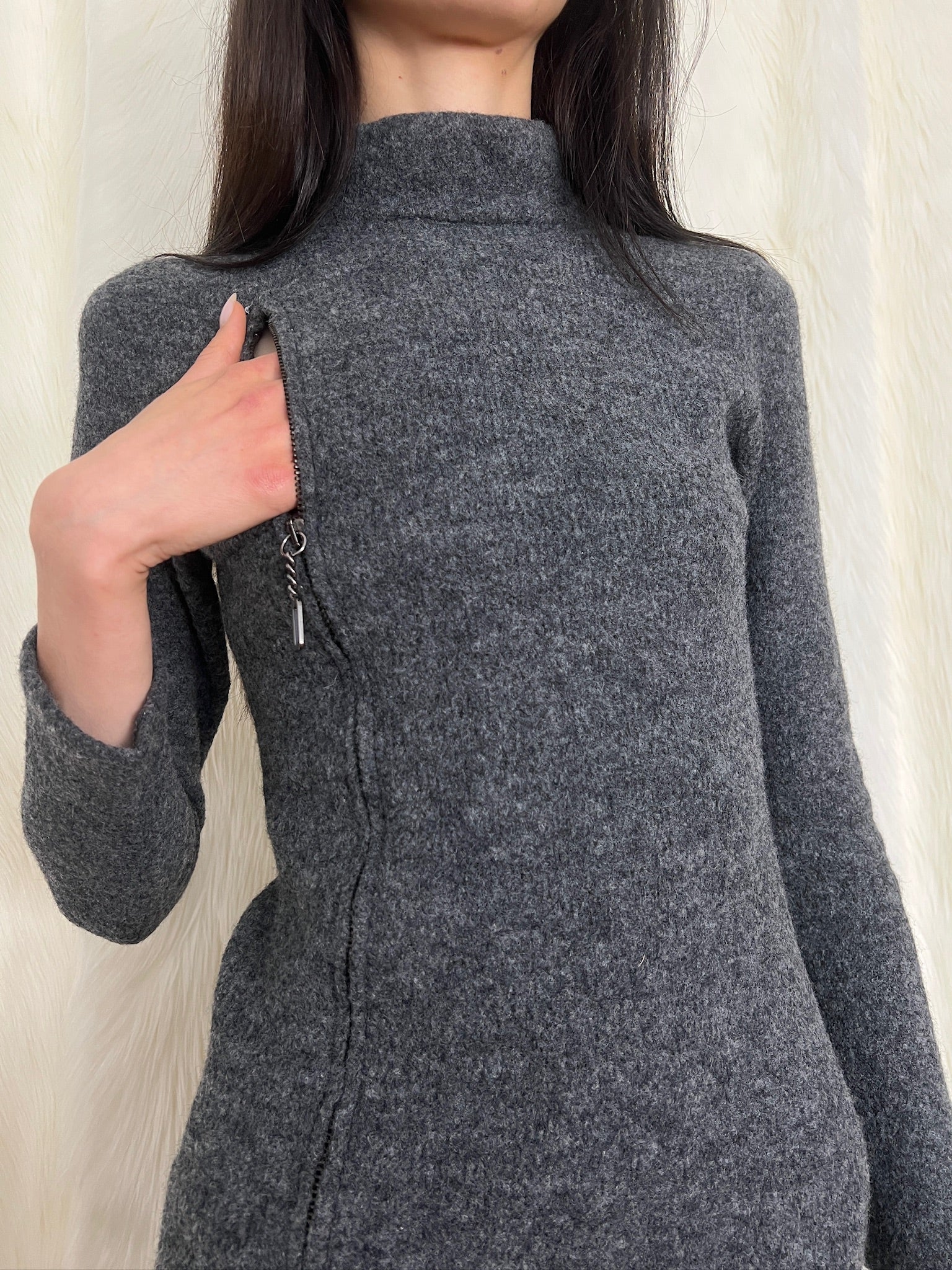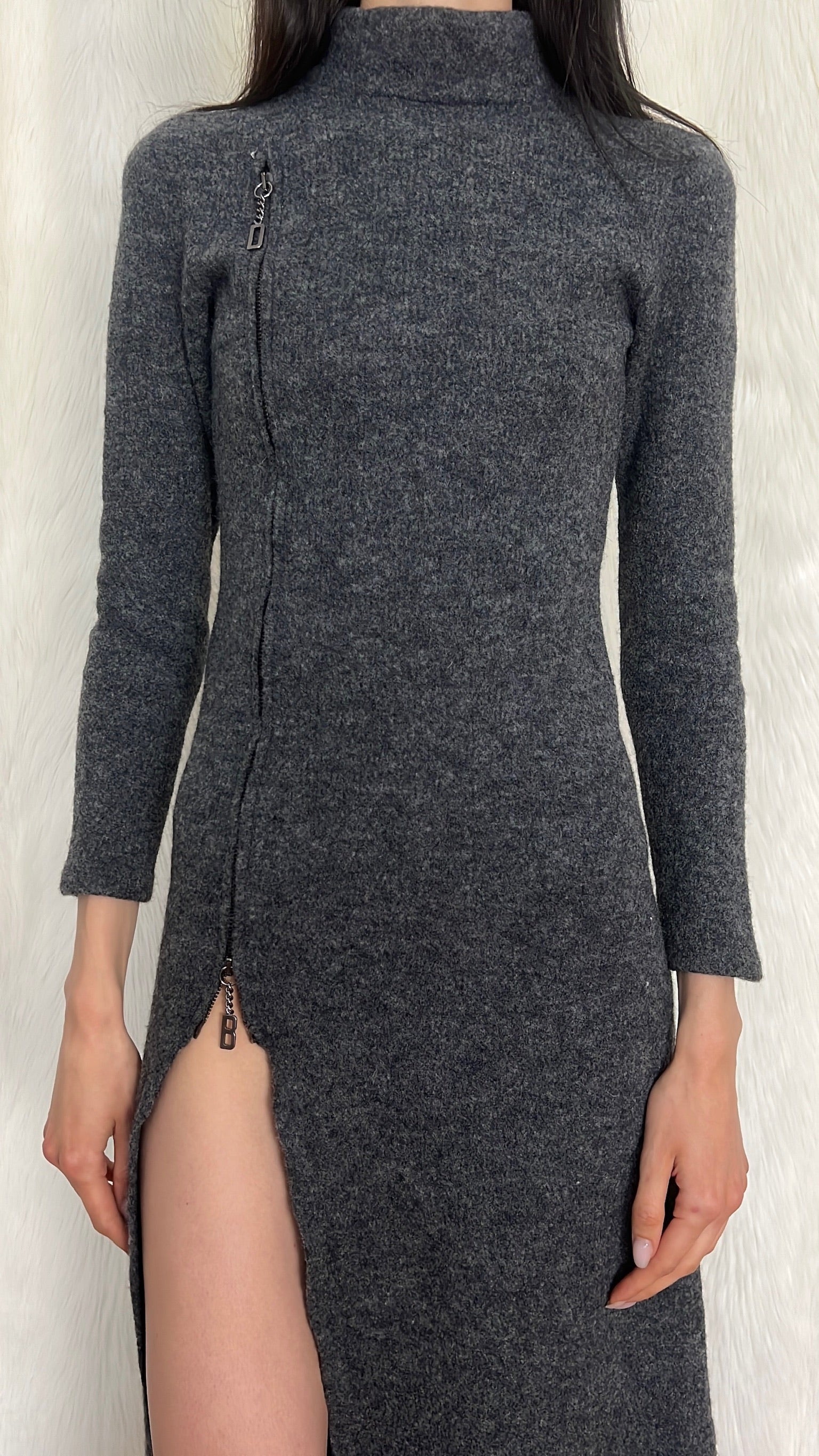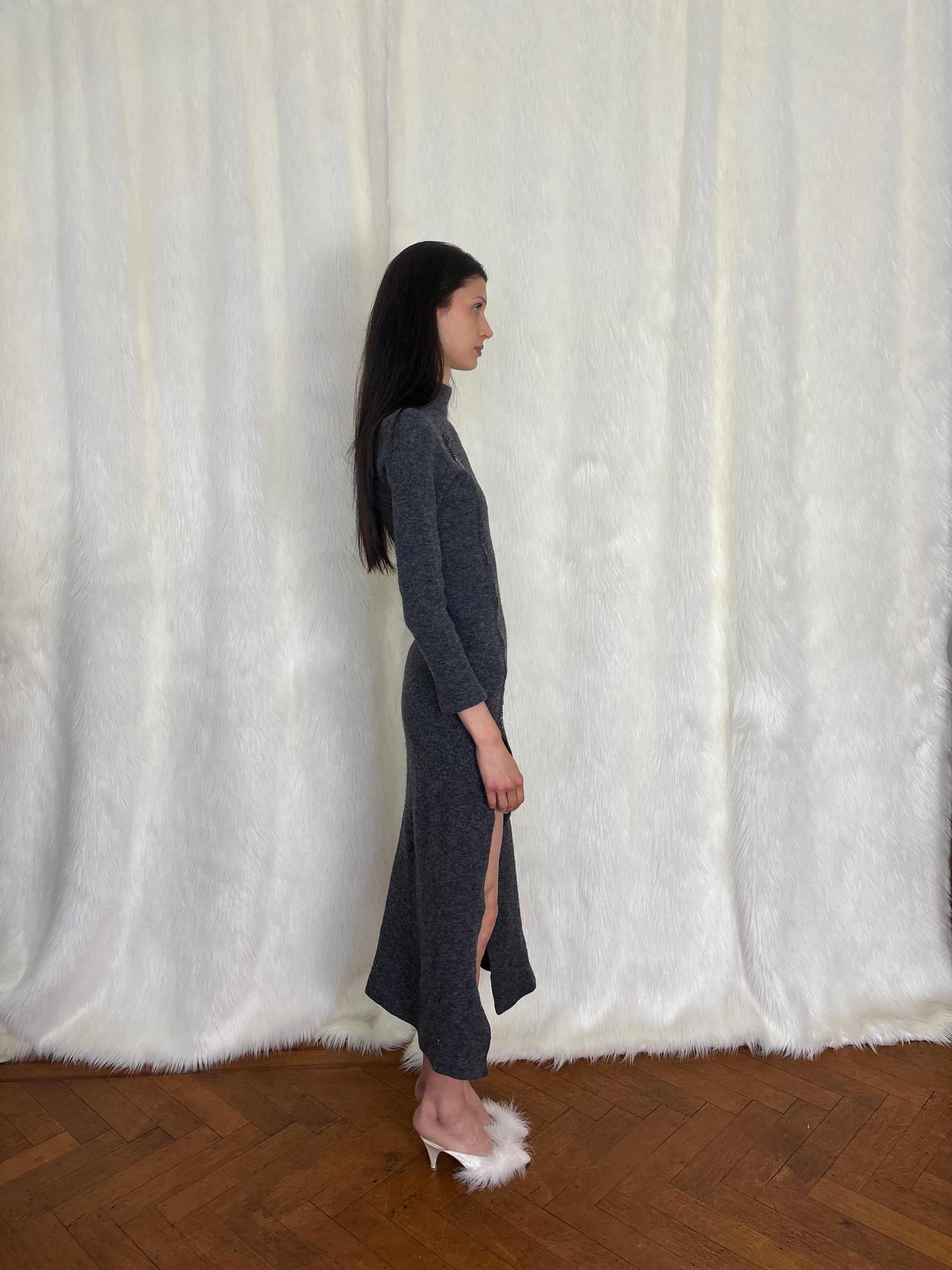Dirk Bikkembergs f/w1999 wool maxi dress with logo zippers