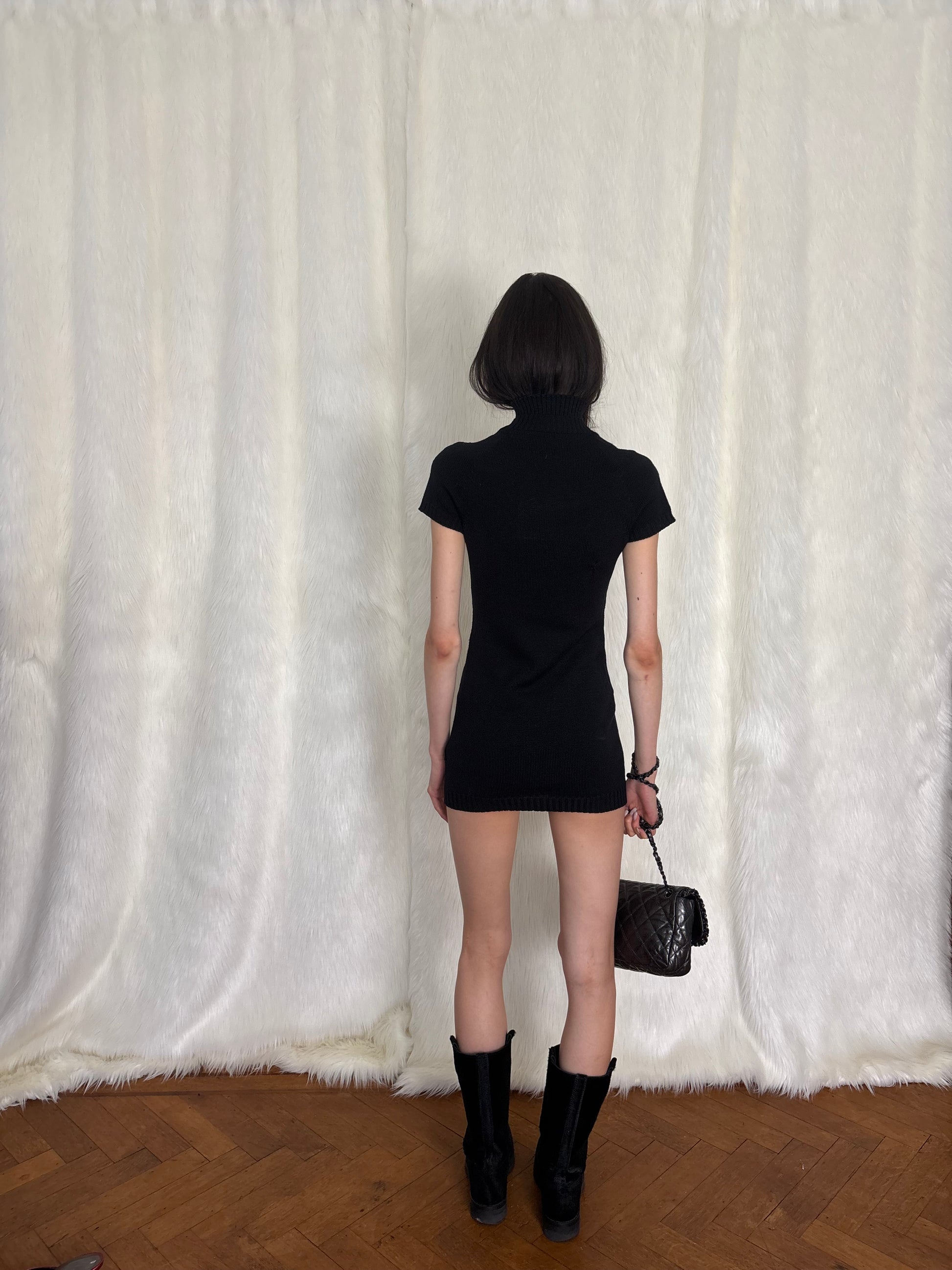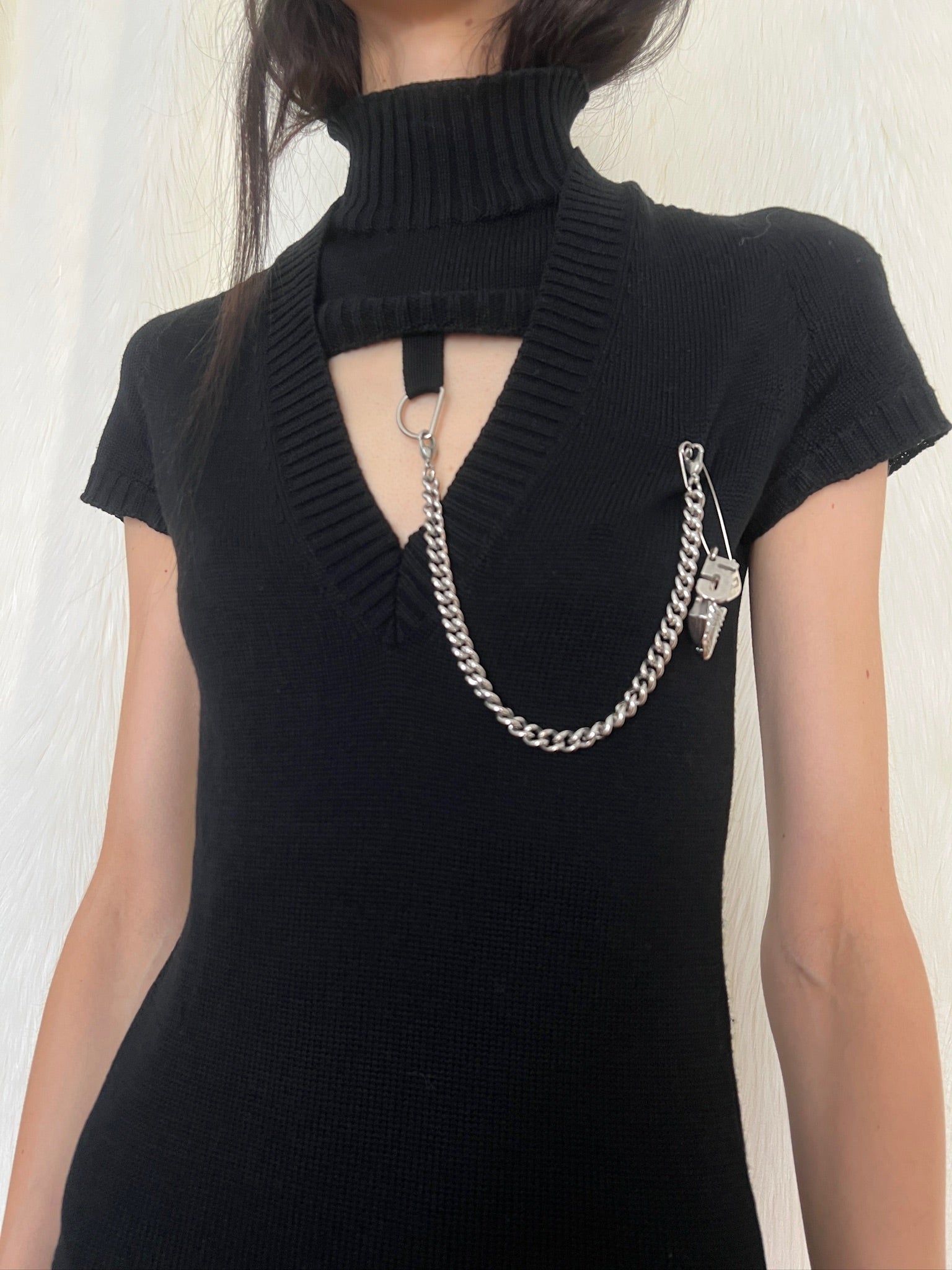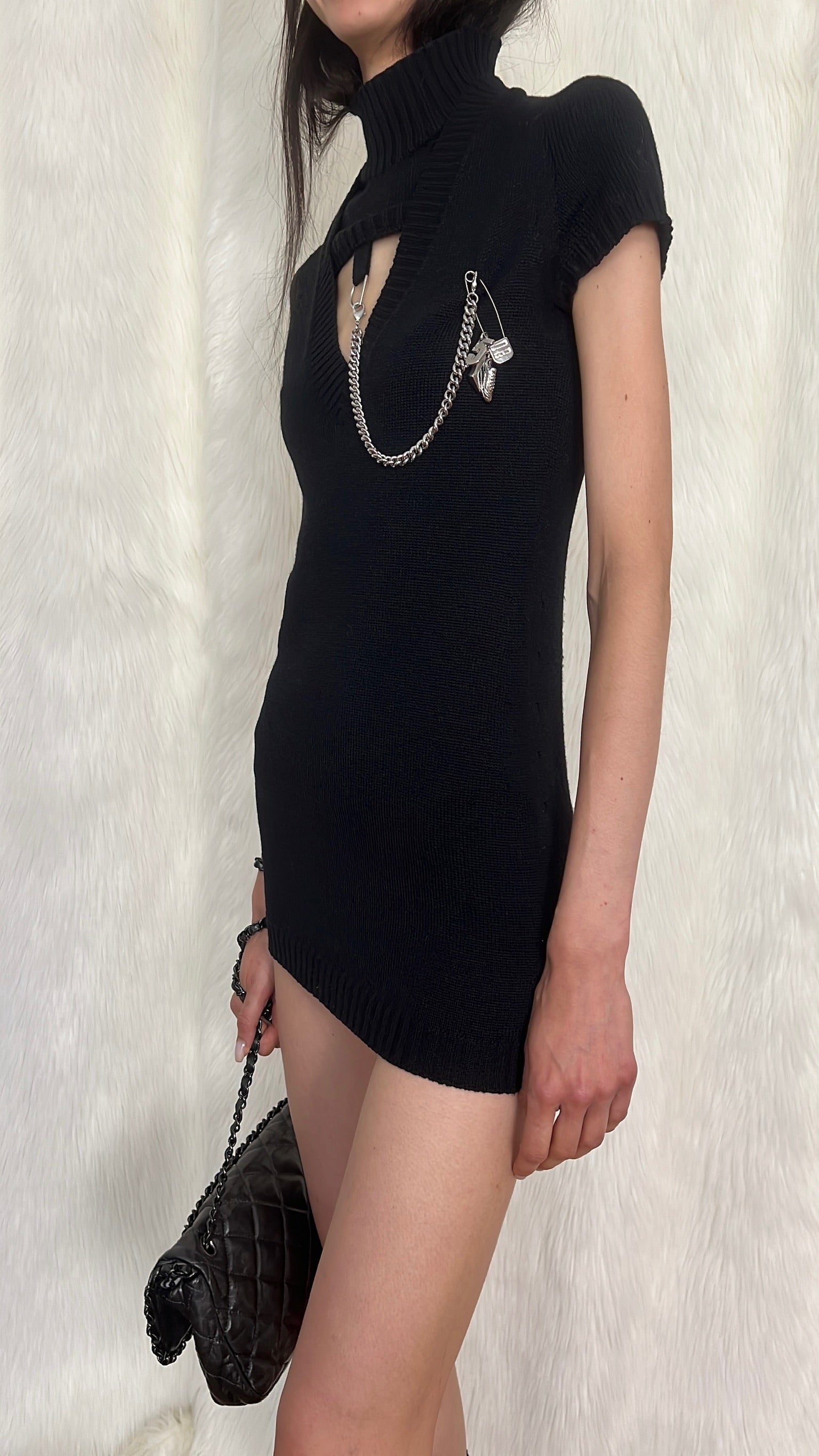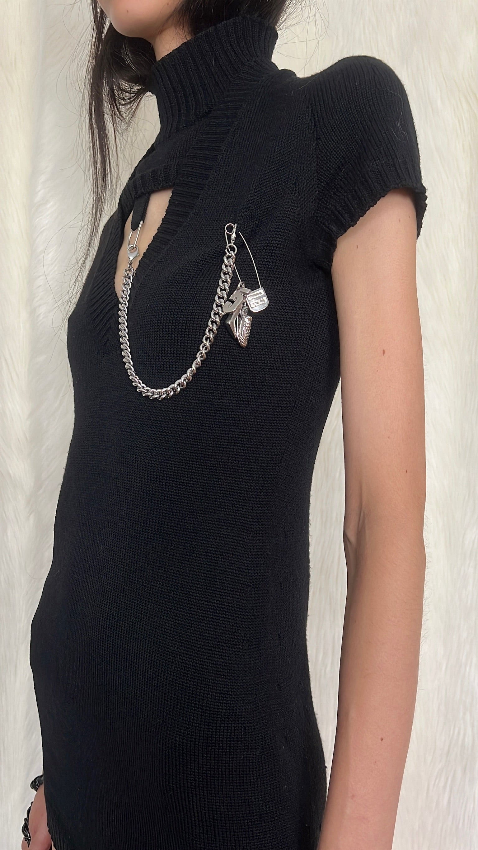 Dirk Bikkembergs f/w2005 wool mini dress with charm chain pin