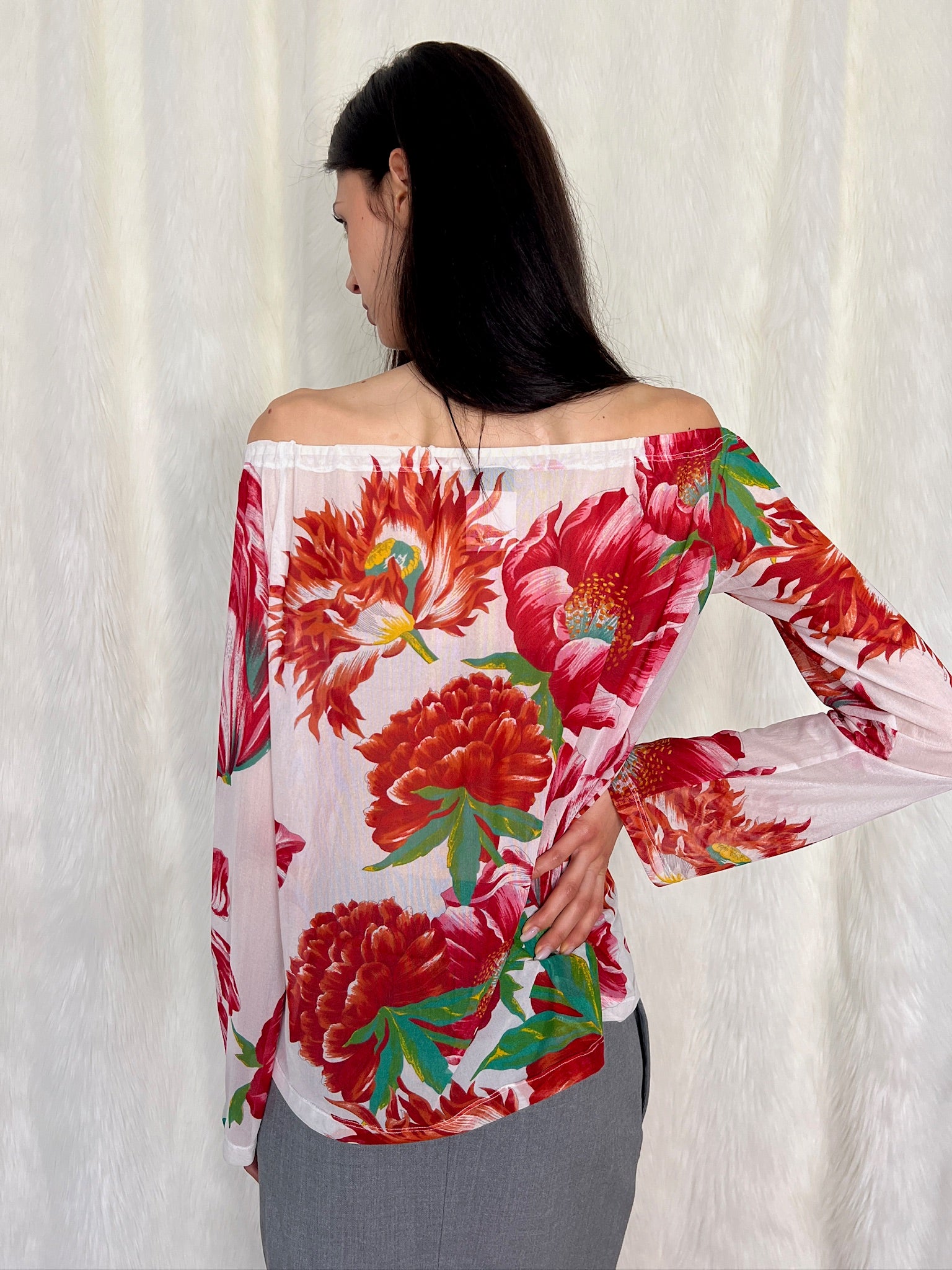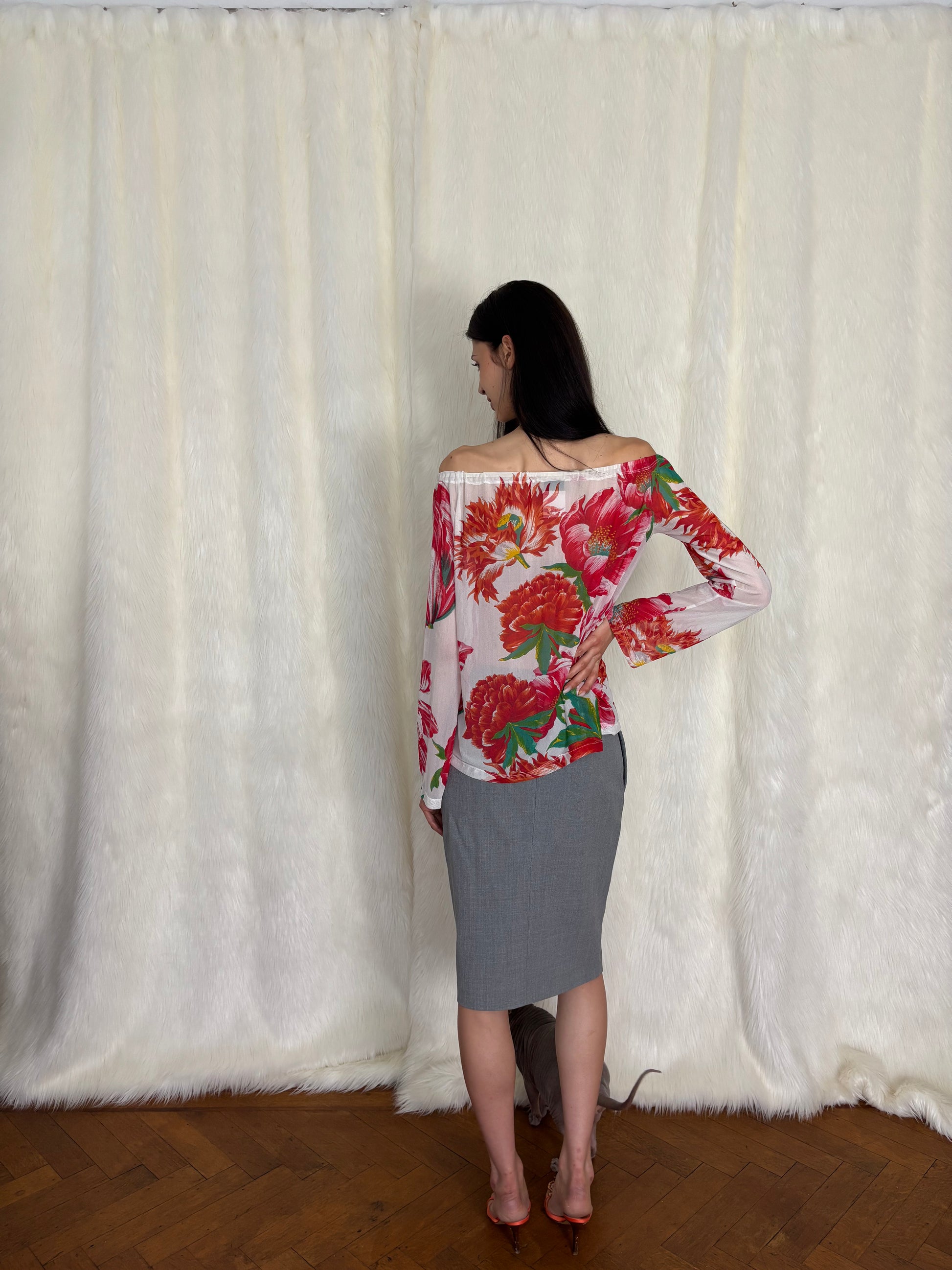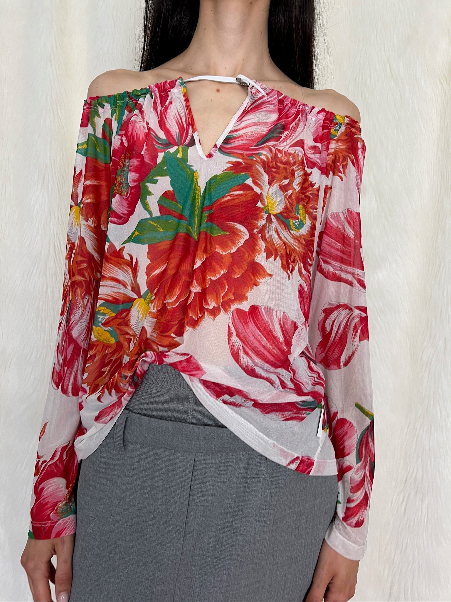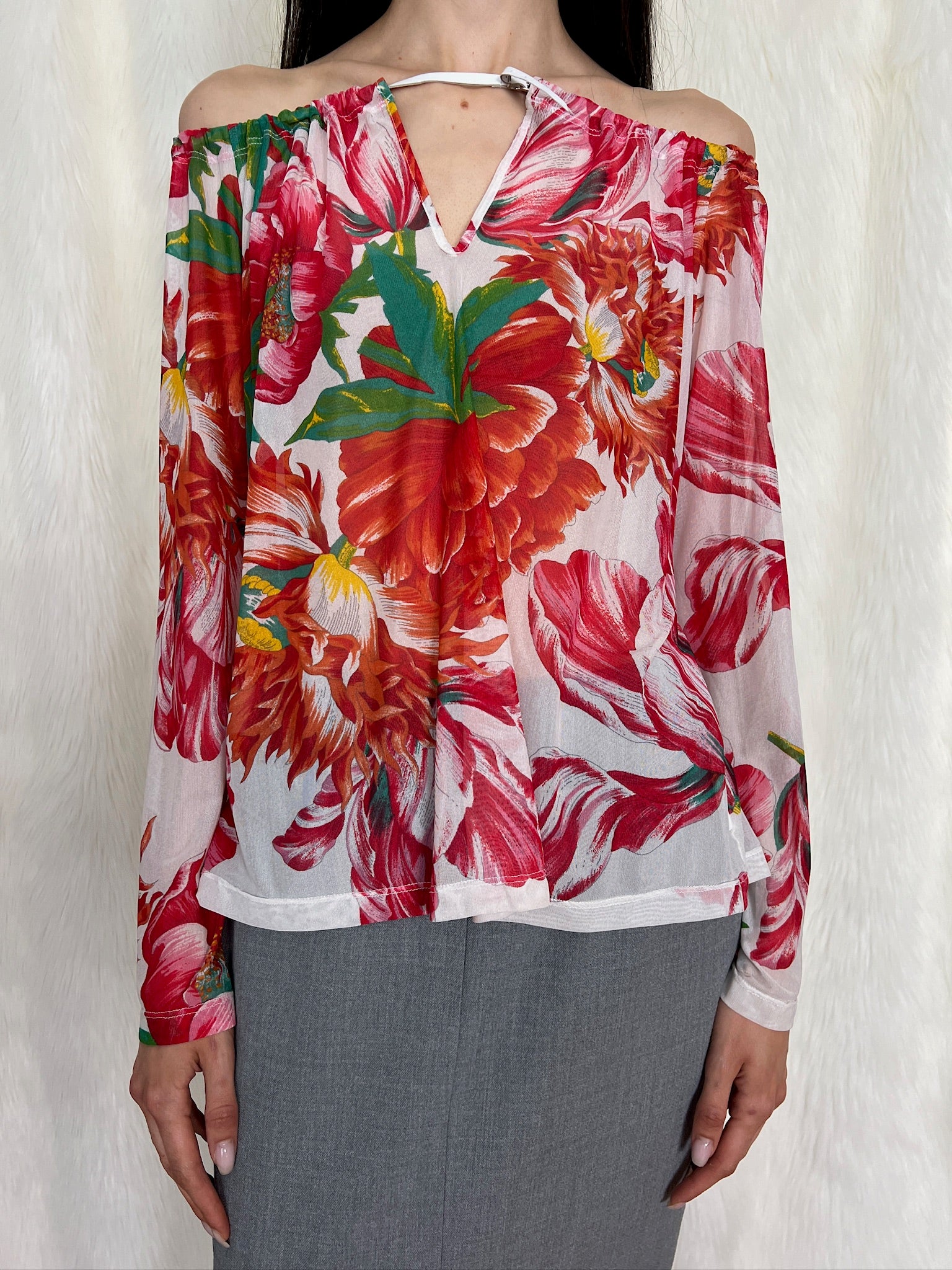 Gianfranco Ferre jeans s/s2000 flower print mesh blouse