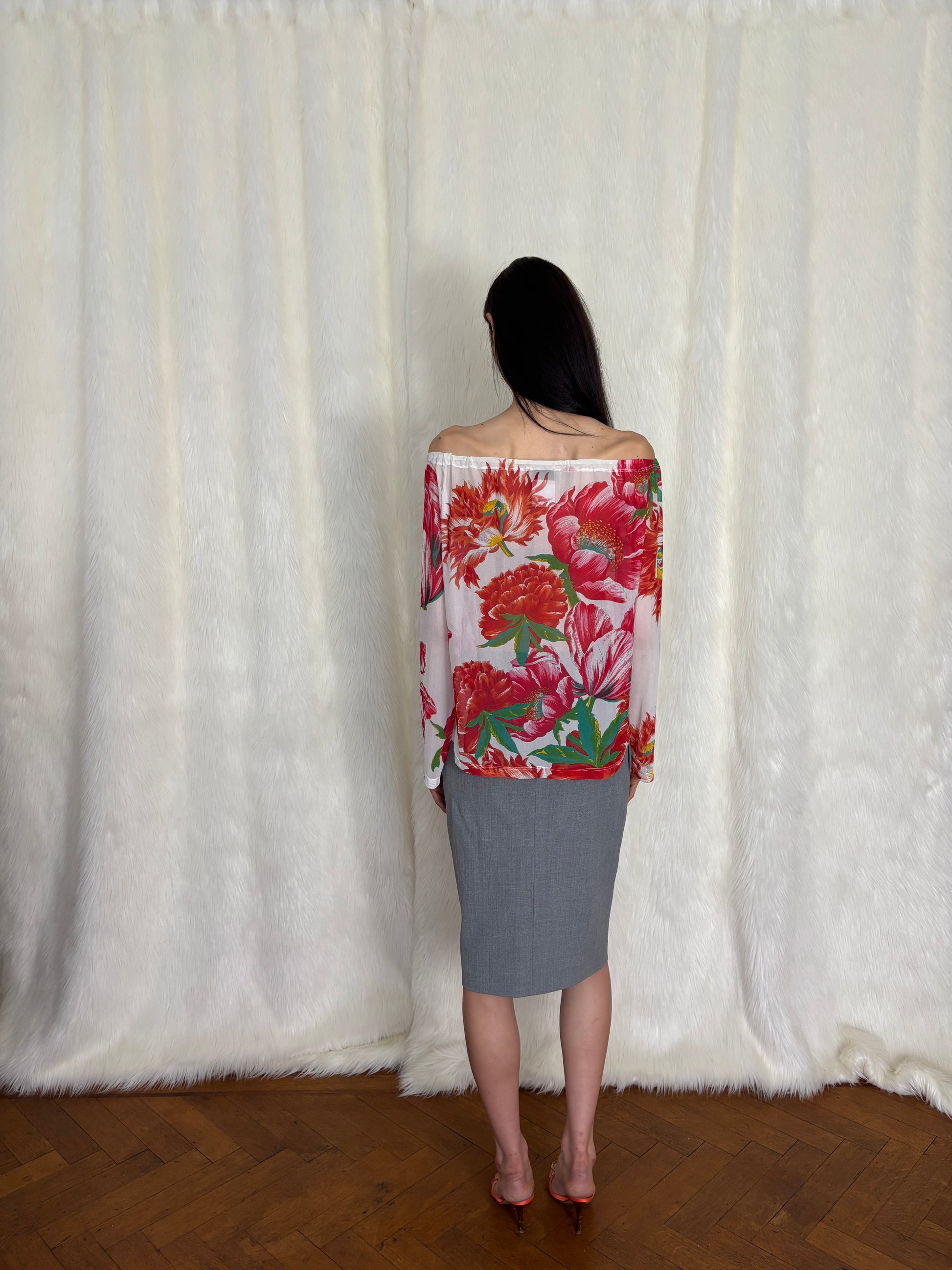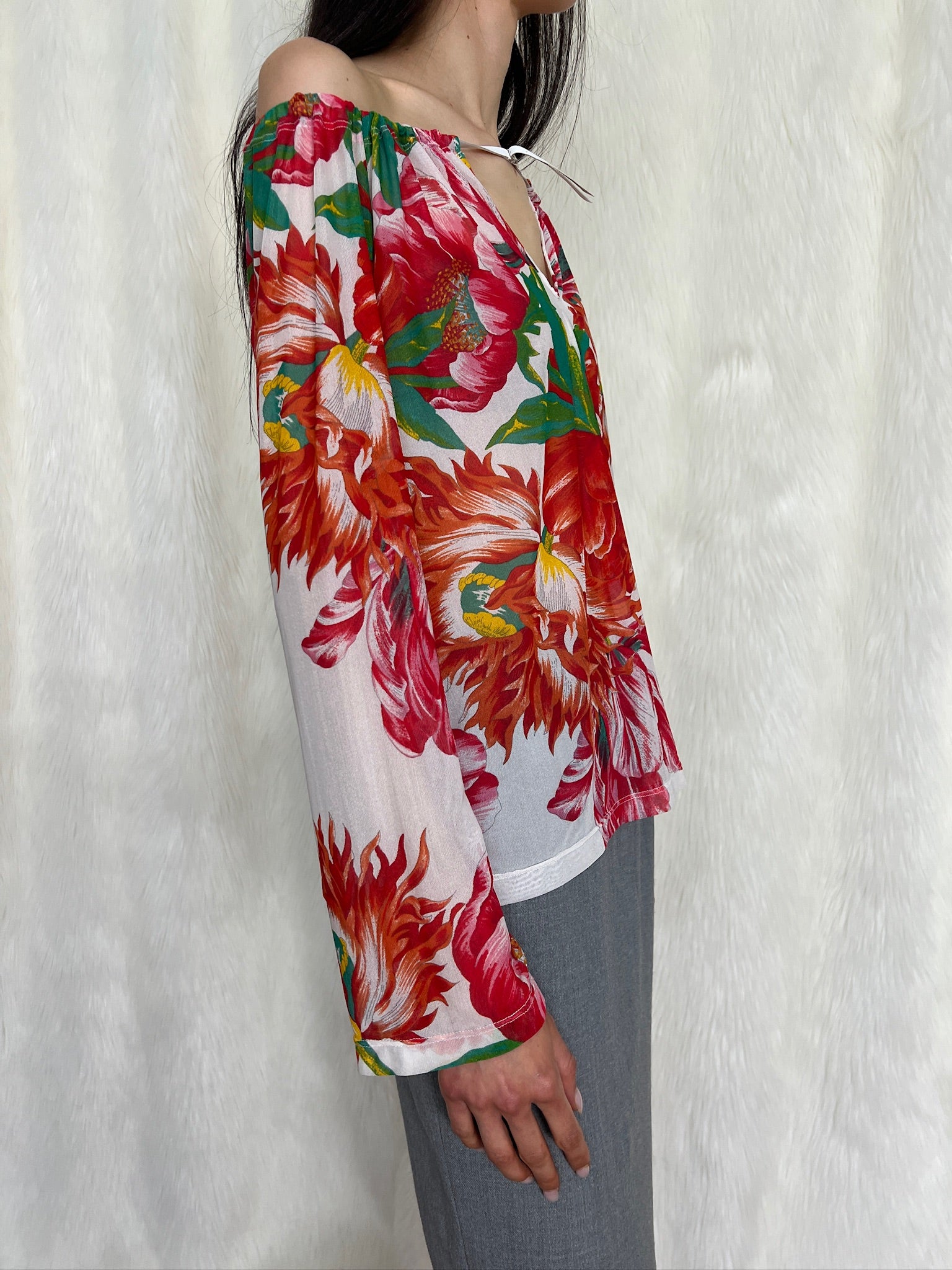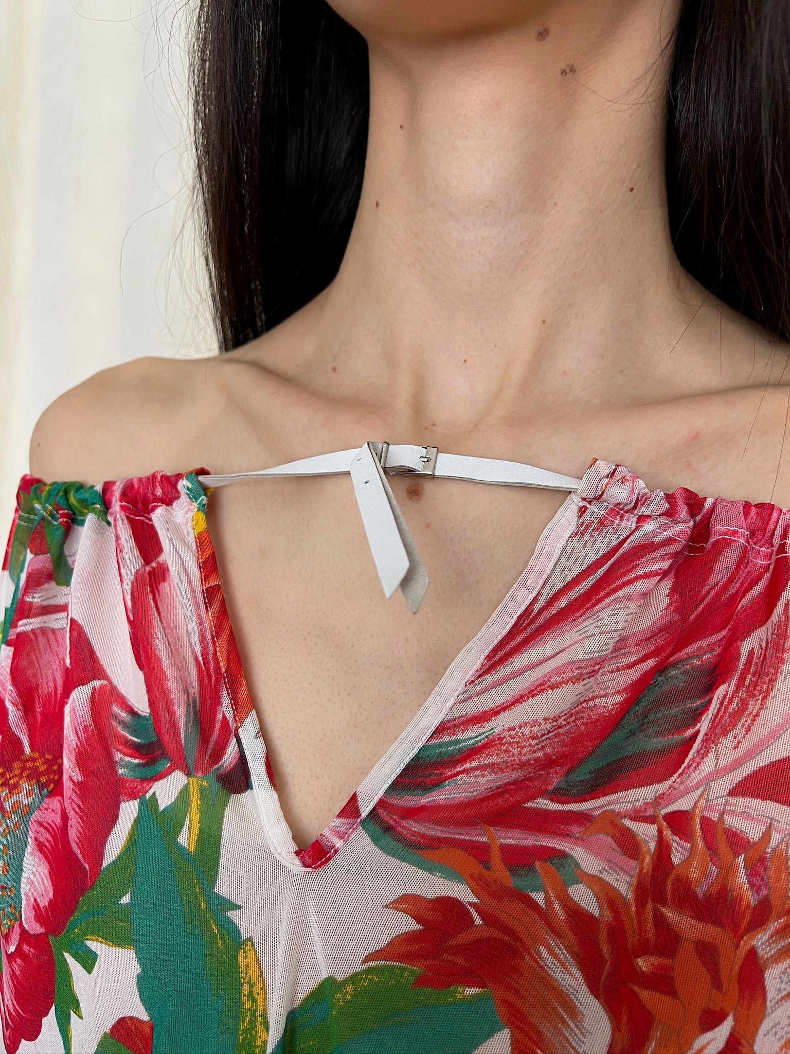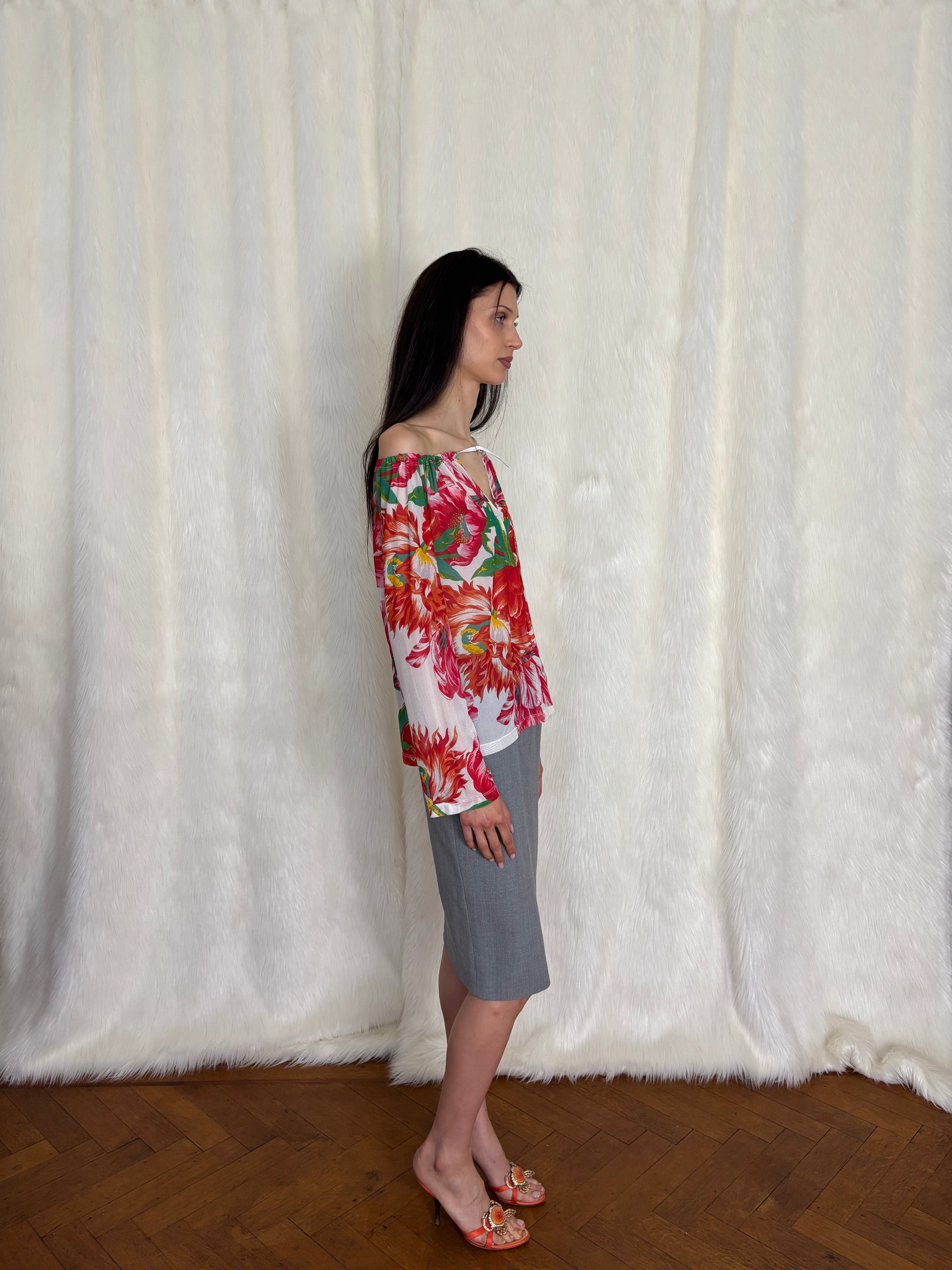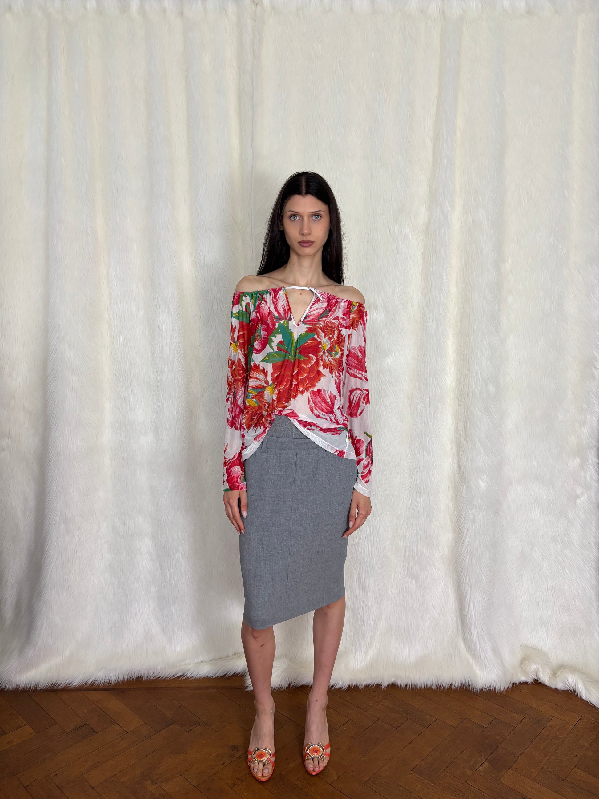 Gianfranco Ferre jeans s/s2000 flower print mesh blouse