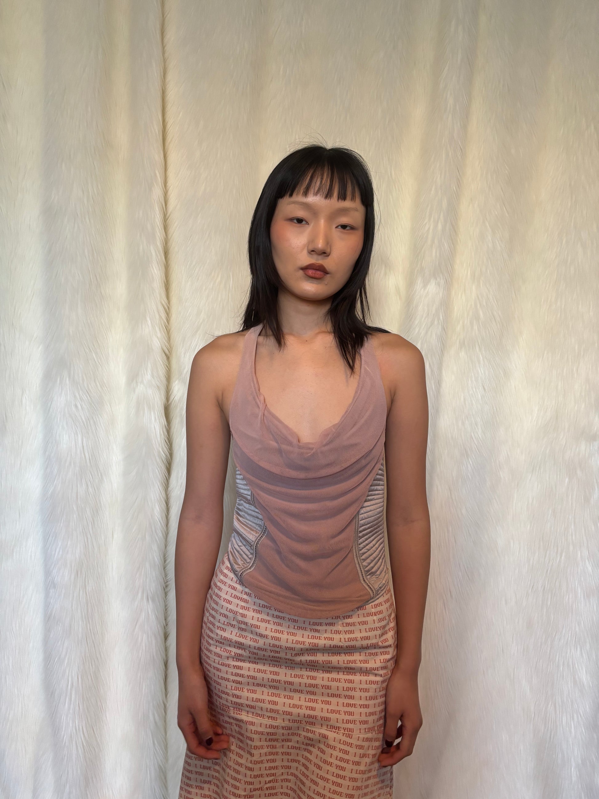 Gucci f/w 2003 mesh/satin top
