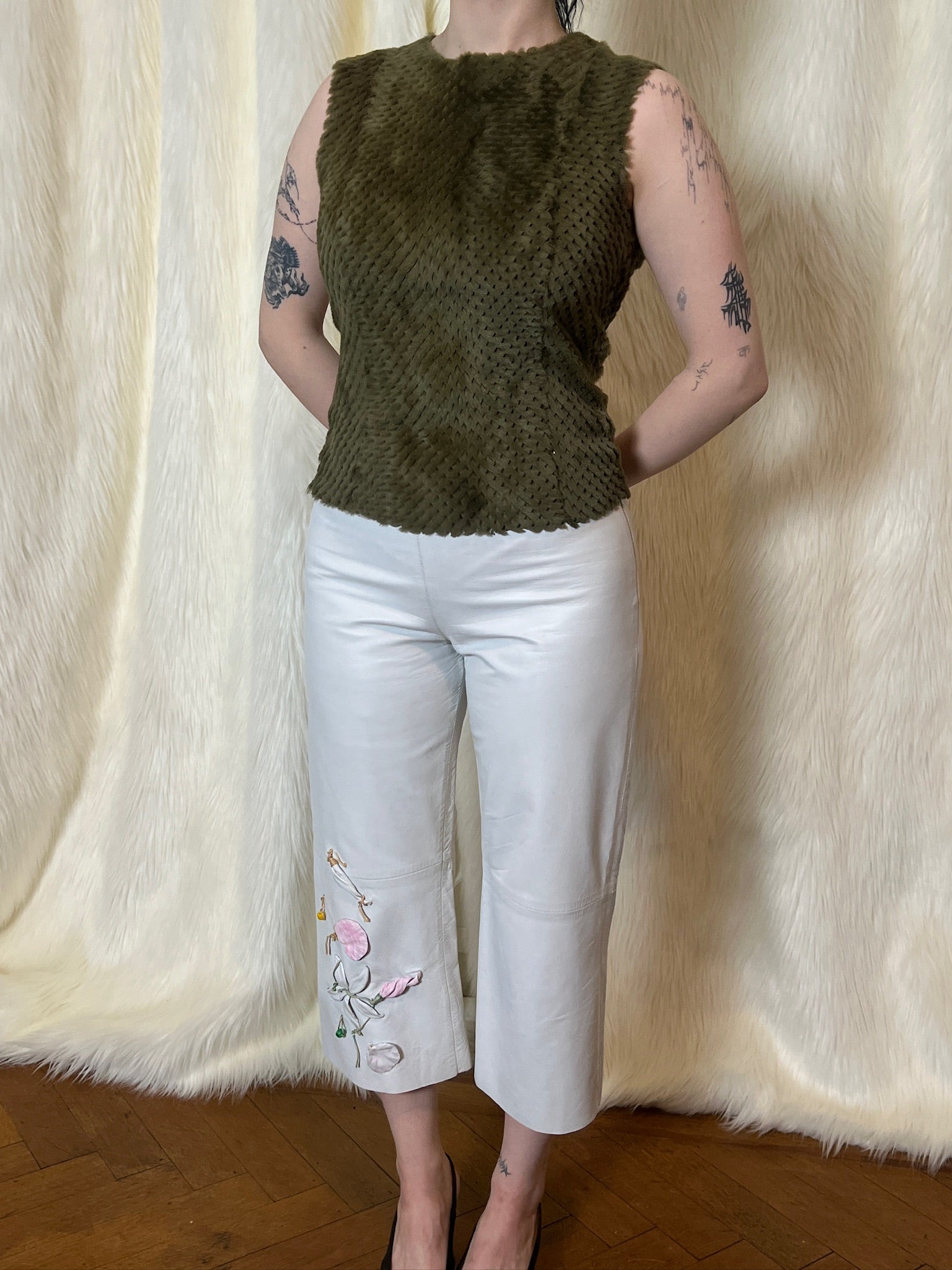 Plein Sud perforated lamb fur top