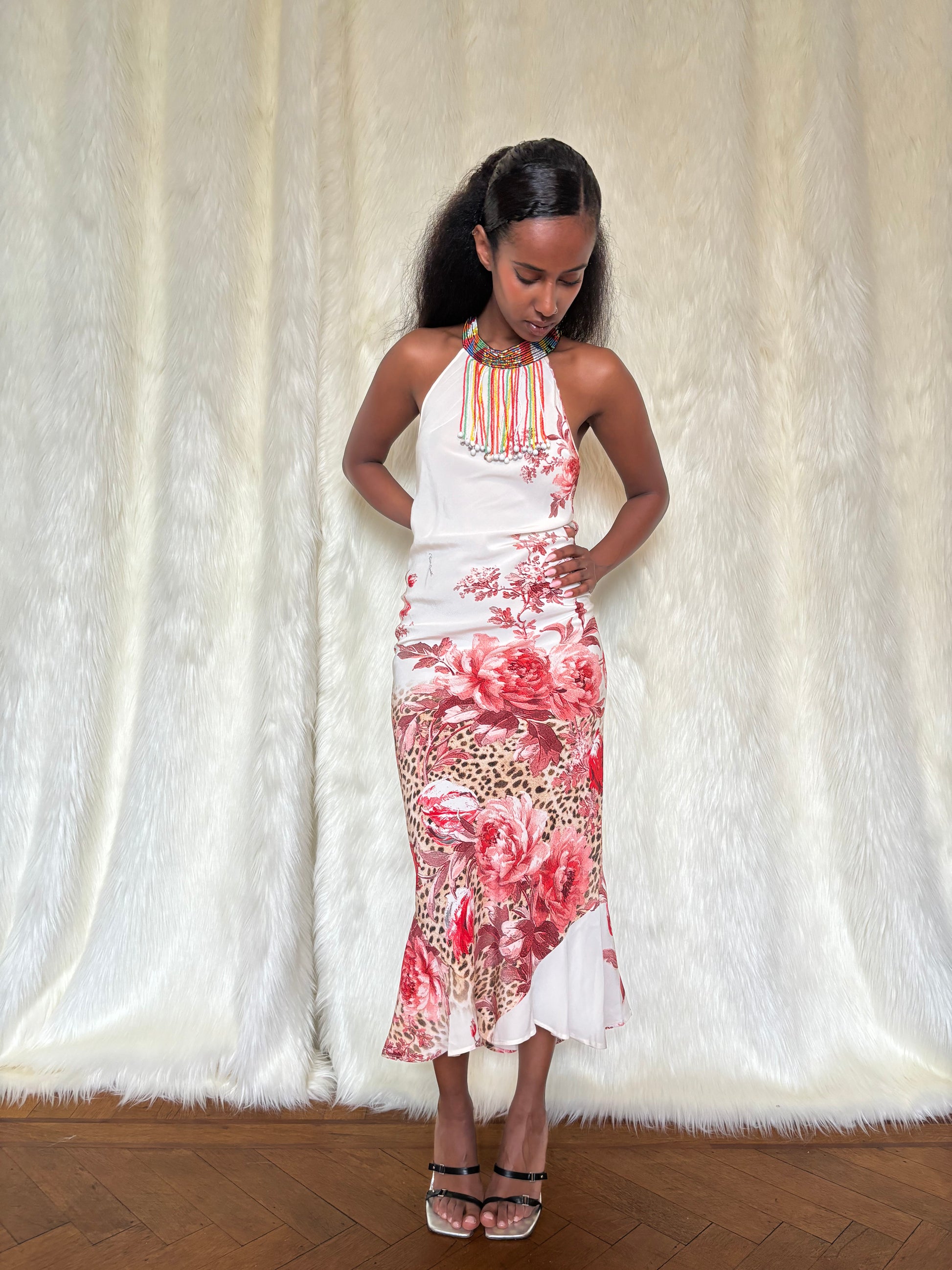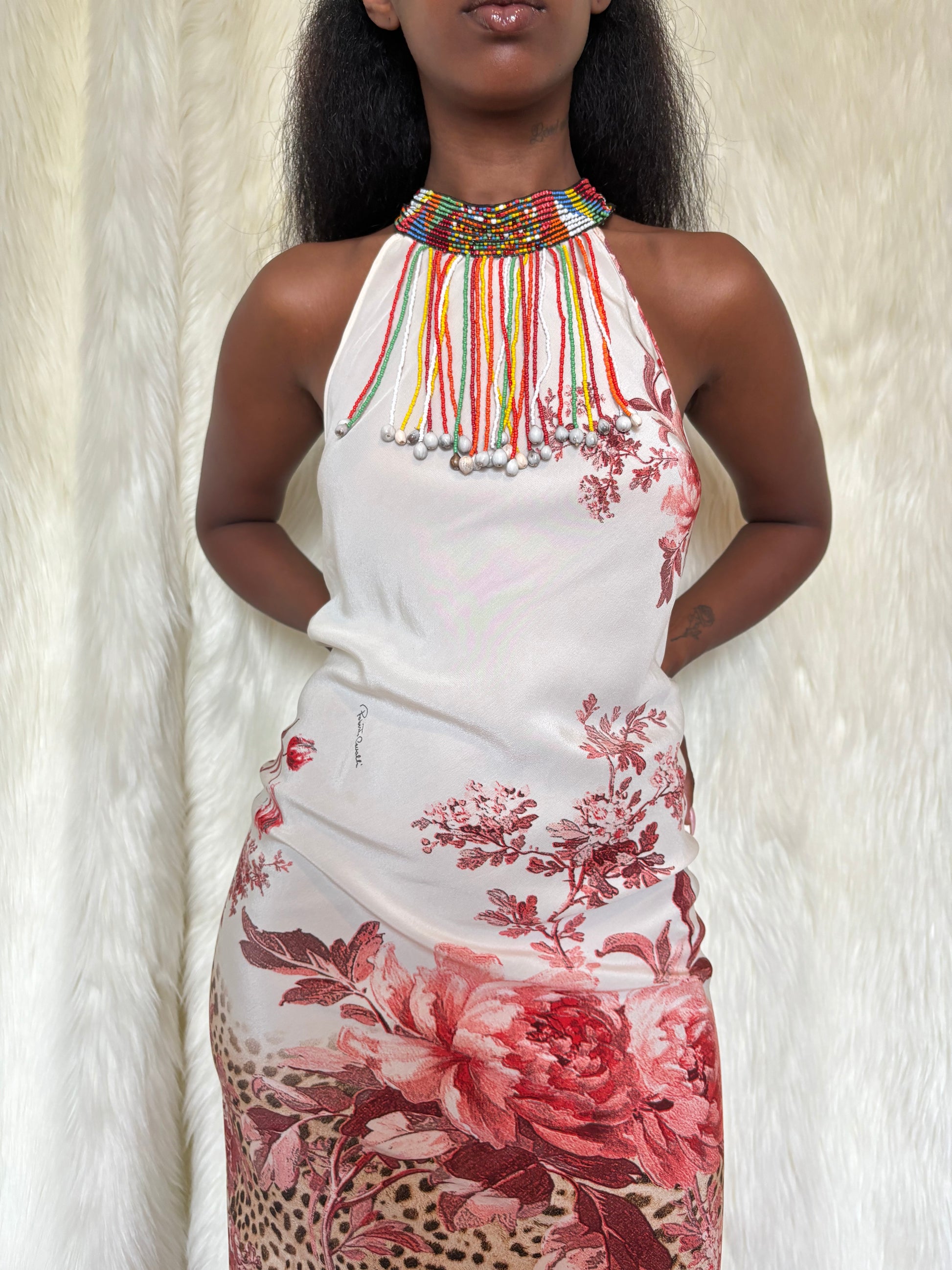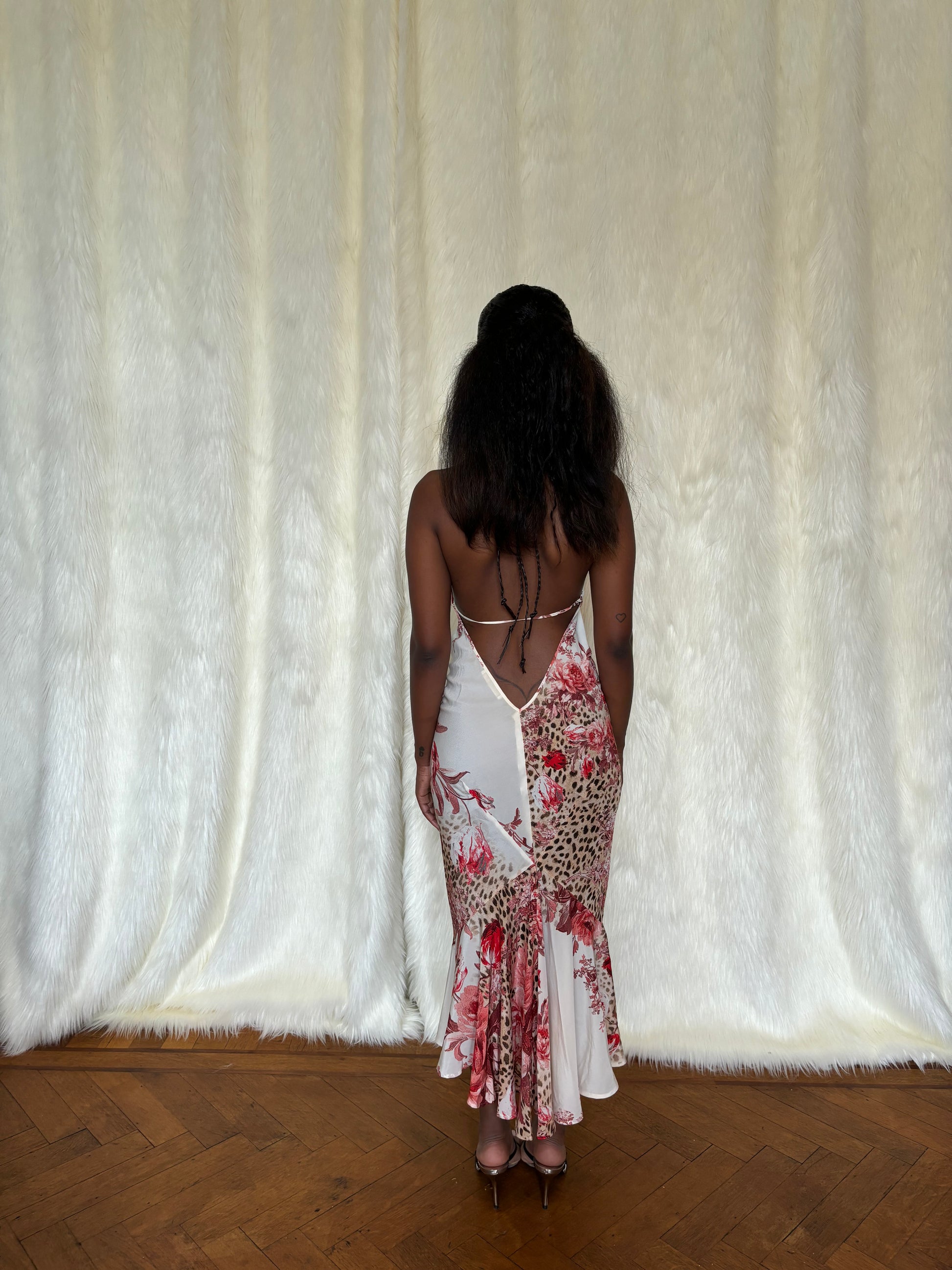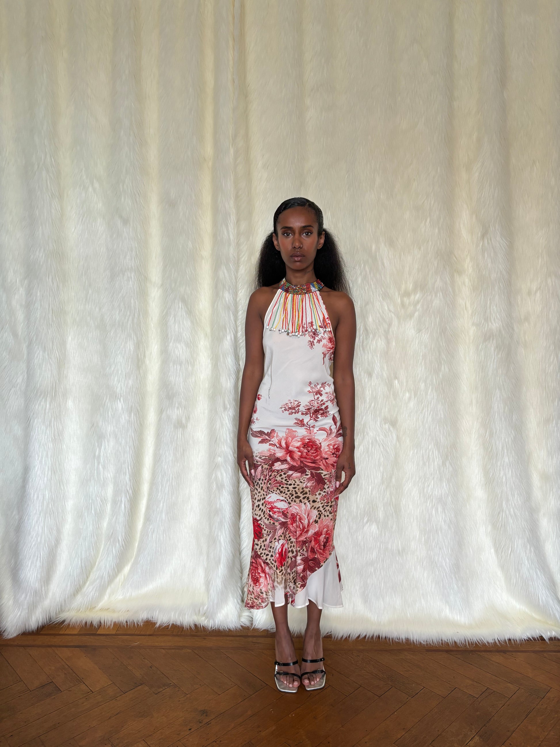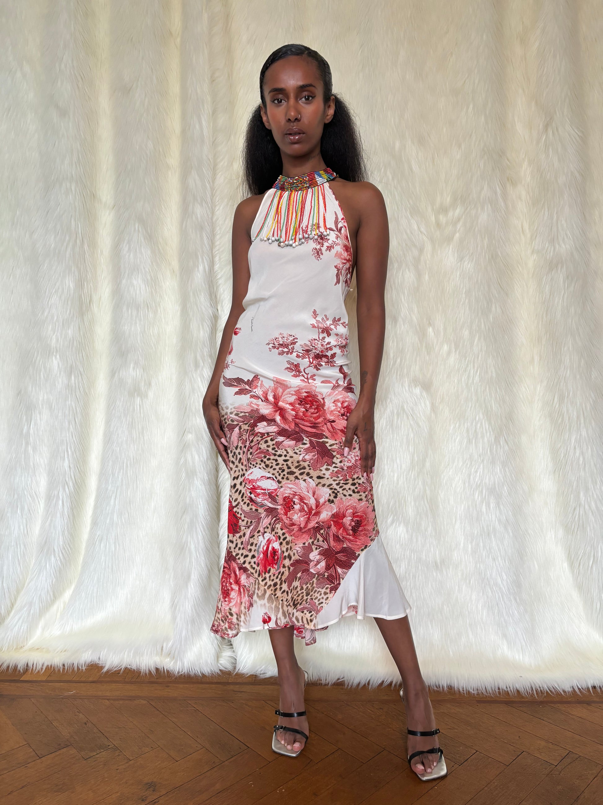 Roberto Cavalli SS2002 silk dress with open back and beaded colar