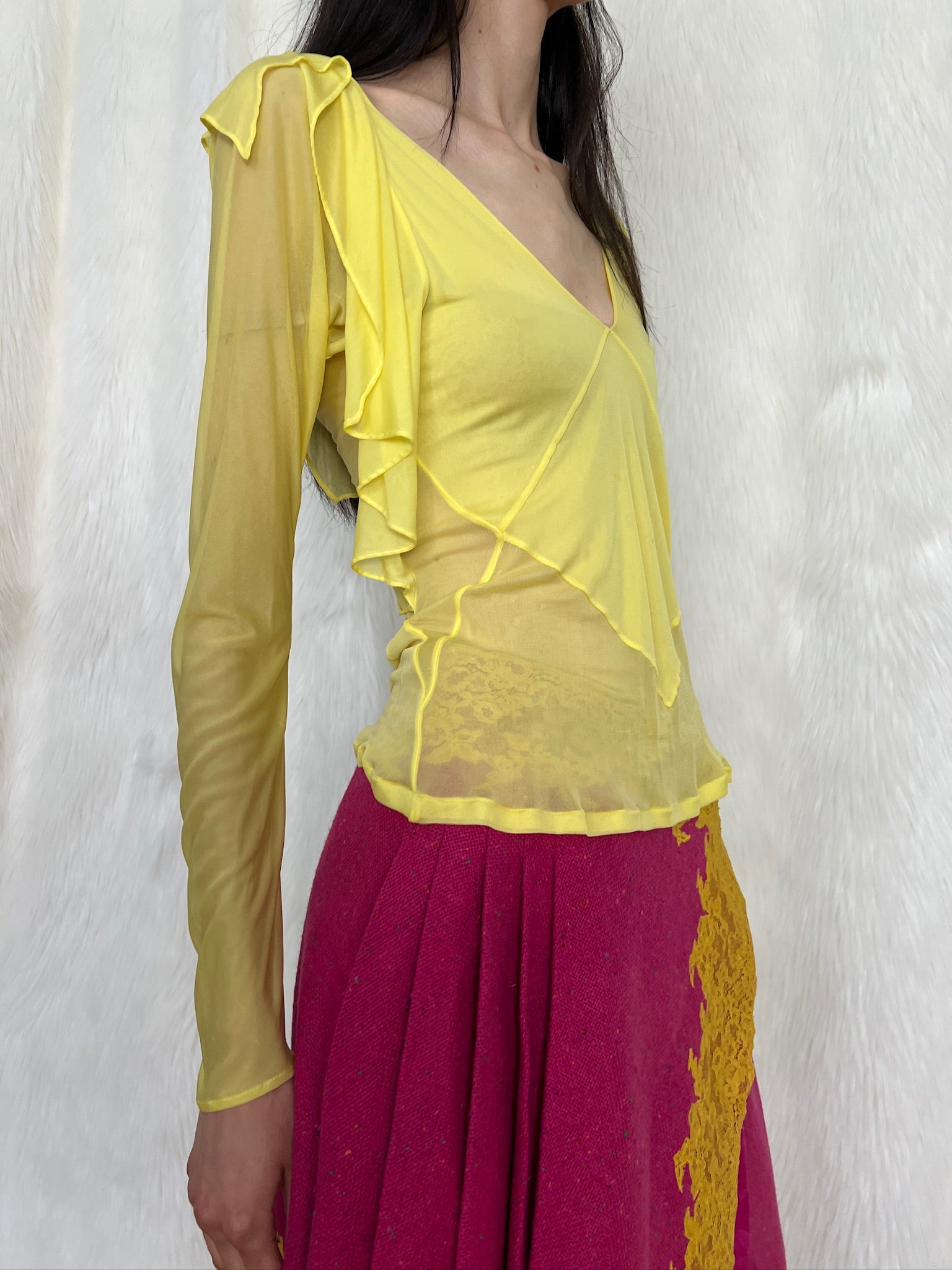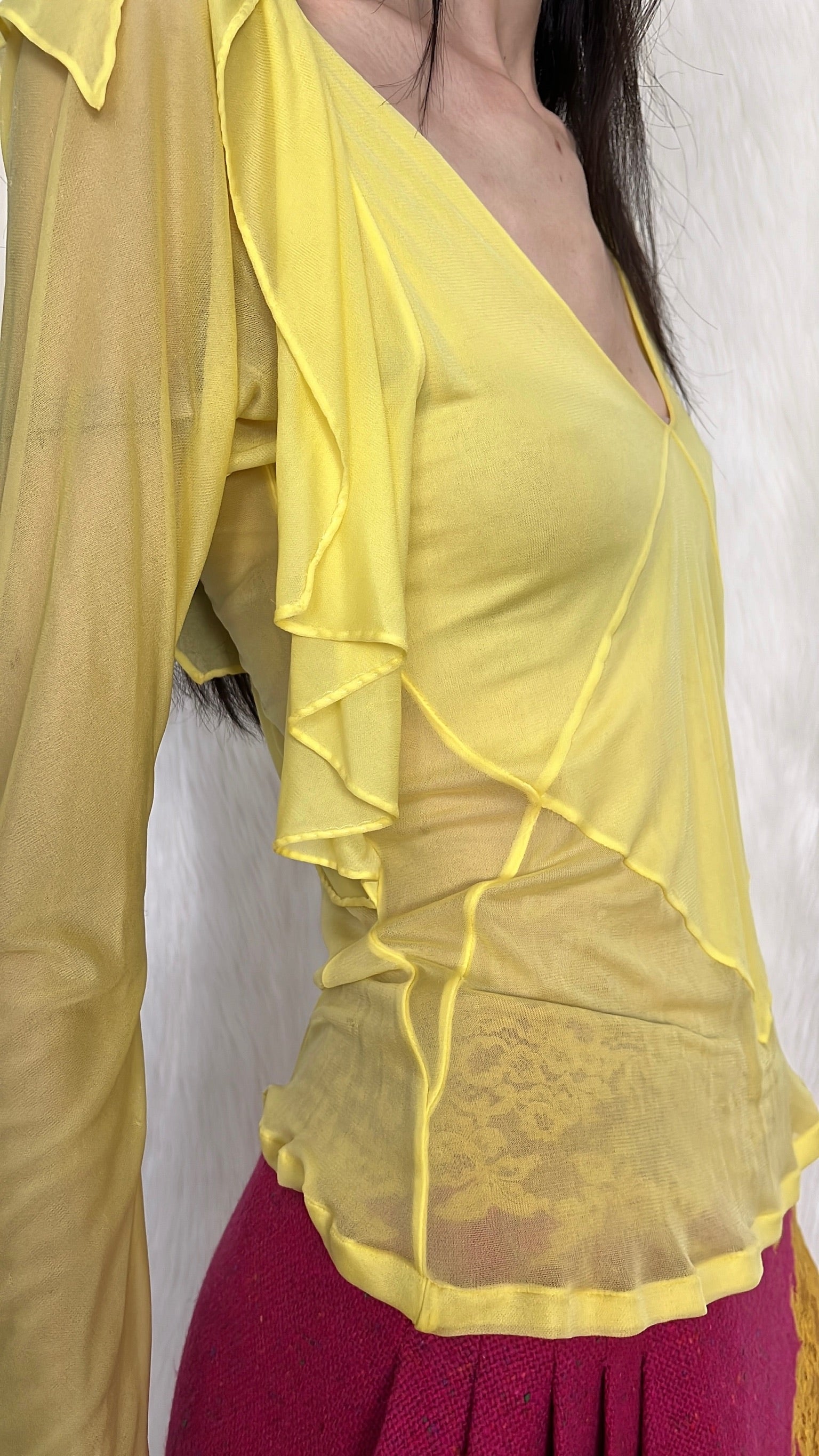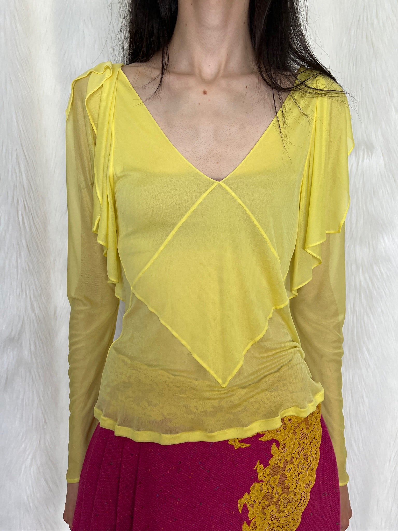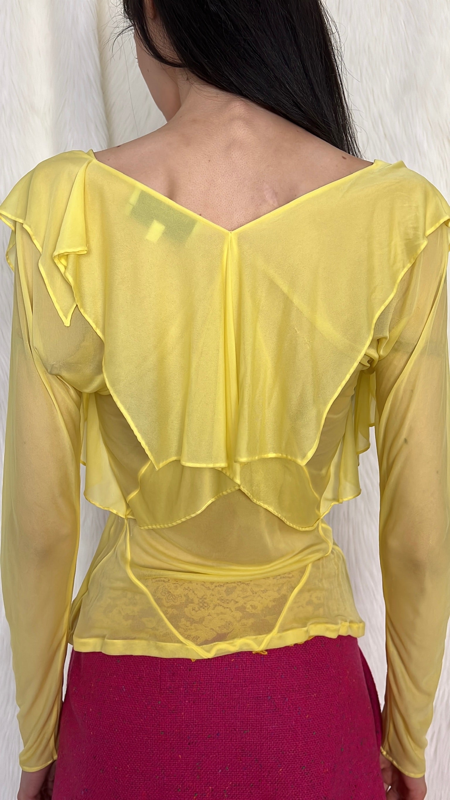 Yves Saint Laurent by Tom Ford s/s2004 yellow sheer ruffle longsleeve
