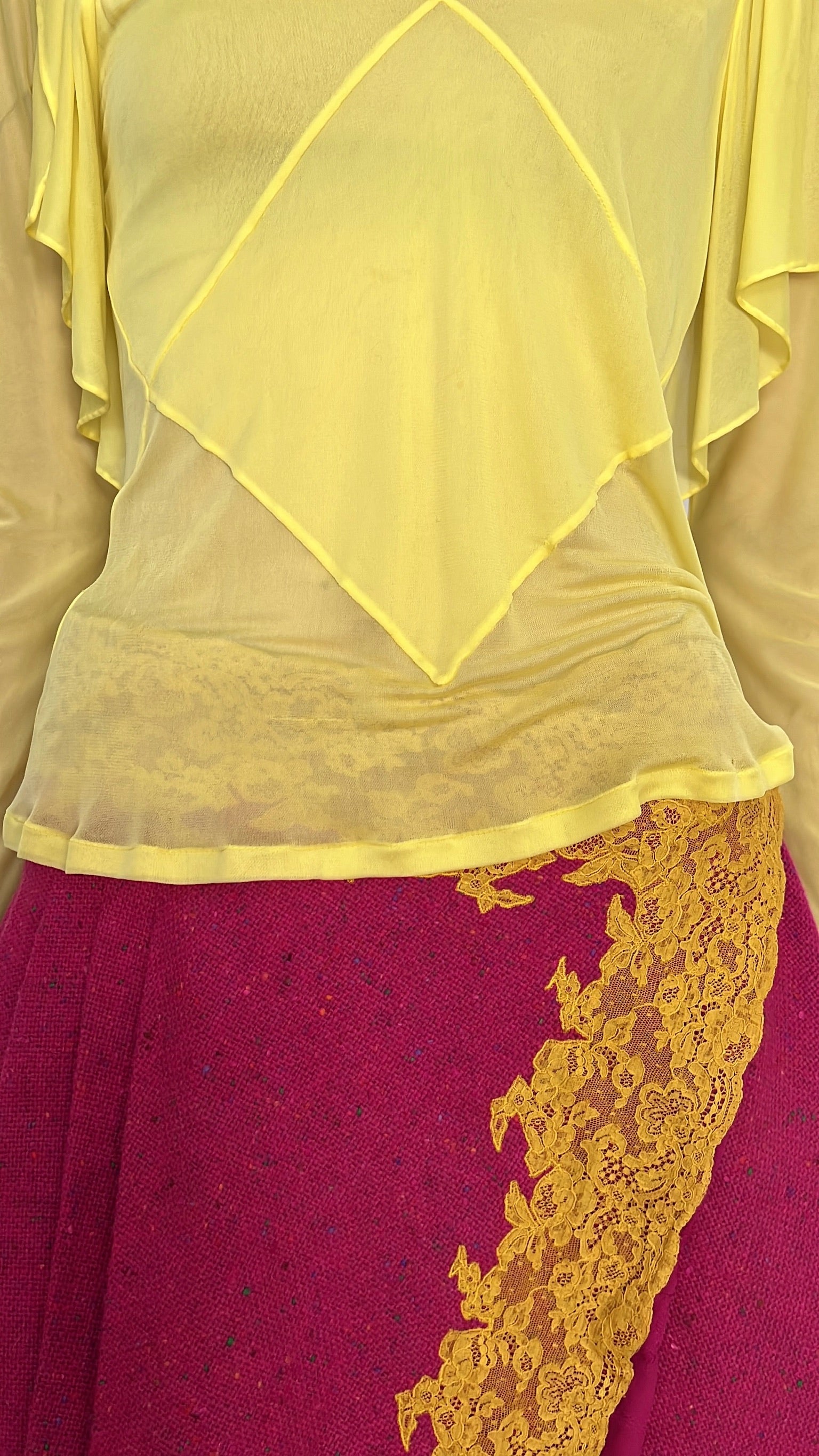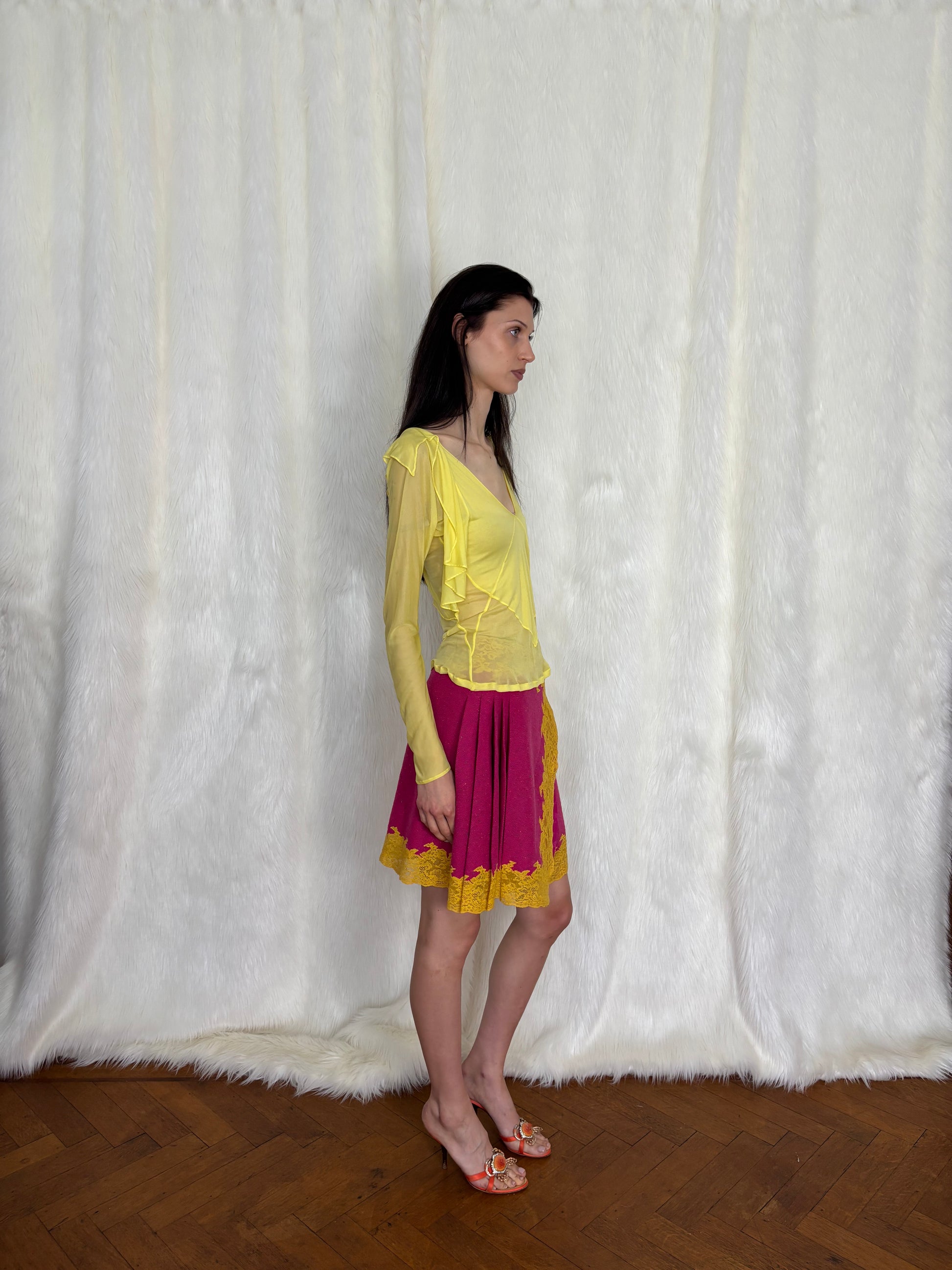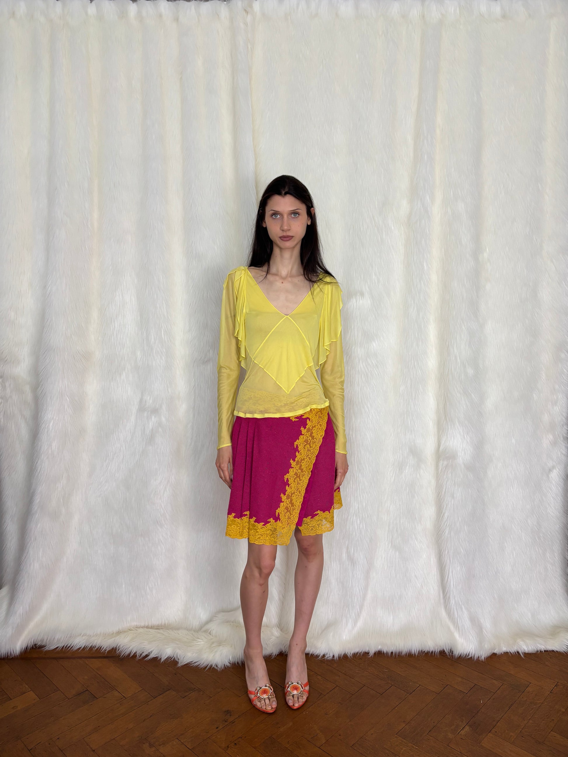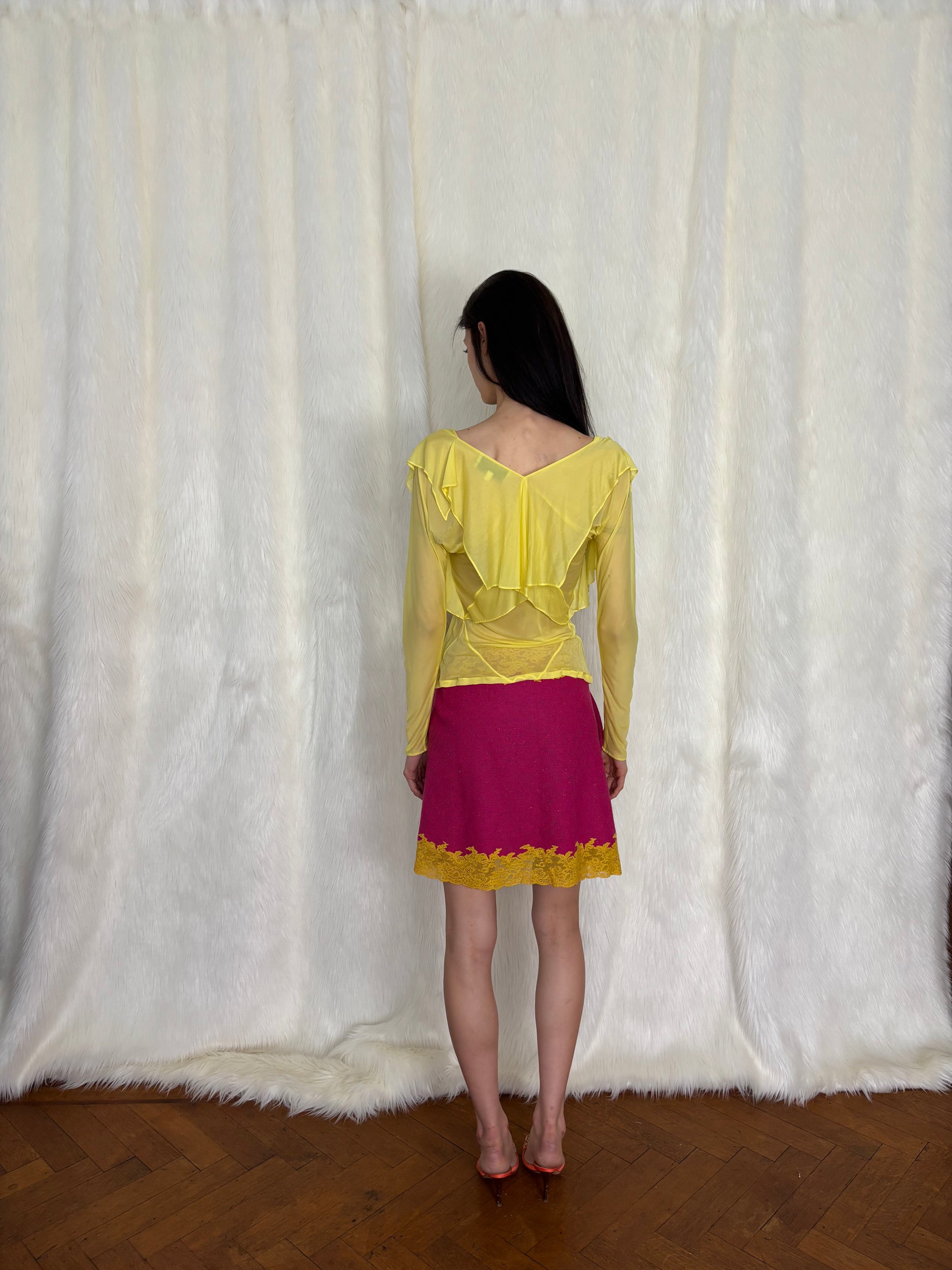 Yves Saint Laurent by Tom Ford s/s2004 yellow sheer ruffle longsleeve